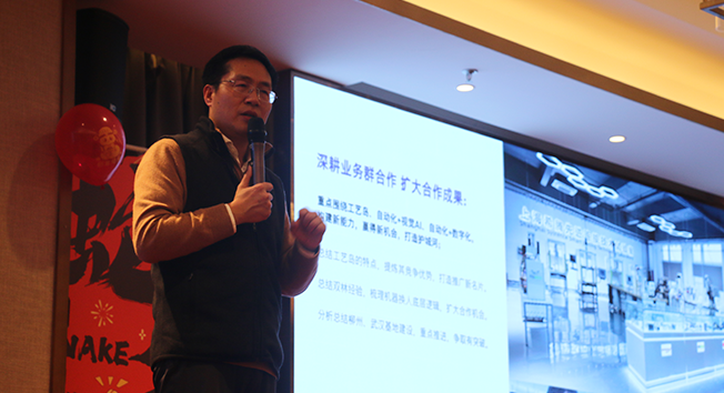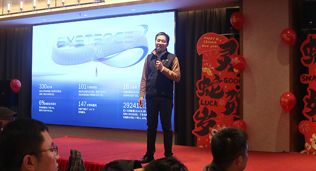 刘总通过数字总结了2024年的成果,300多套方案、100多个交付项目、邀约面试1800多人,自动化产线和检测设备订单量创历史新高,PROMESS精密伺服压机总销量提升6%,FMW径向旋铆机取得历史性突破,技术服务140多次、全年采购数量超292418.3件等,这些数字汇总在一起时,它就不再只是单纯冰冷的数字,而是我们每一个希腾人共同努力的结果。